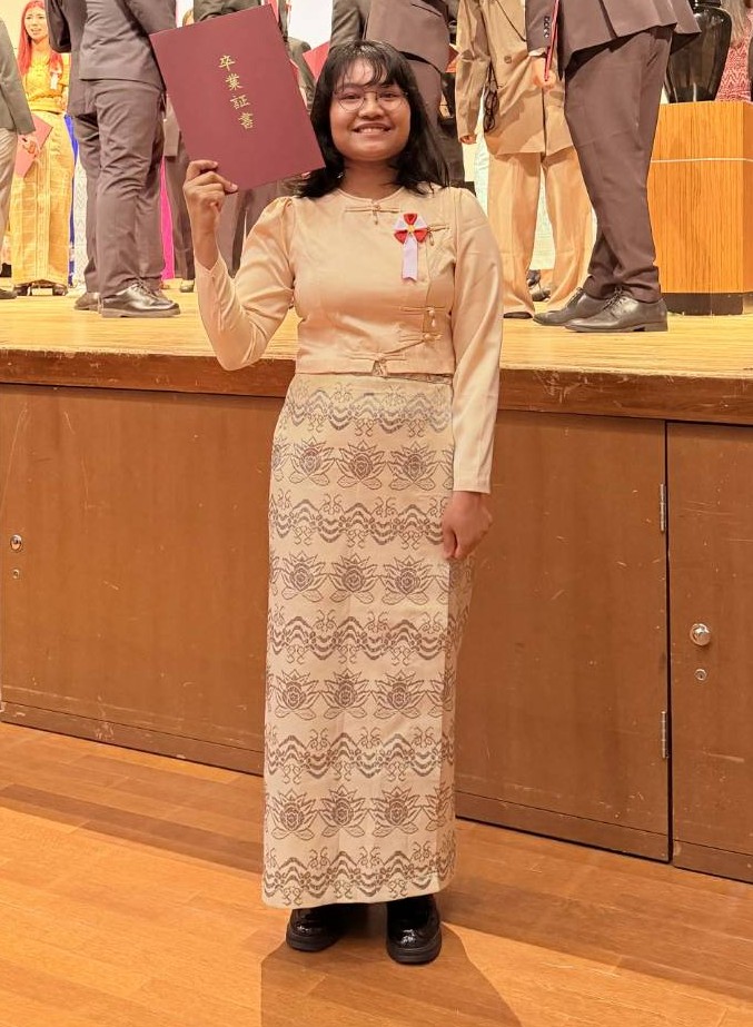 テイン・モーサンさんは、ミャンマー出身。本を読むことが大好きで、外国の作家の著書も含め様々な分野の本を読み、多くのことを学んできました。母国で通っていた大学を中退後、日本語学校に留学することを決めた時から、日本で大学を卒業することを目標に日本語を学んできました。JACでは、大学入学の準備に真剣に取り組んできましたが、希望学部を絞り込むことに苦労したようです。最初は、日本の大学についての情報を充分に得ることができず、IT系の学部で学ぶことを考えていましたが、様々な情報を集める中で、自身がもともと興味を持っていた心理学を思い出し、国際コミュニケーション学部に絞り、受験する大学を決めました。